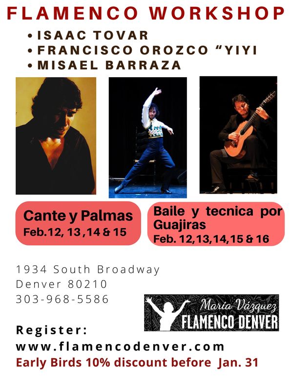 Workshops consist of 4 hours of instruction over the course of four days. Yiyi, will teach flamenco singing and palmas class designed specifically for flamenco dancers. In this class, students will explore the FANDANGOS, letras, singing structures, and key rules for improvisation, along with other essential elements for effective communication within a cuadro (flamenco ensemble).